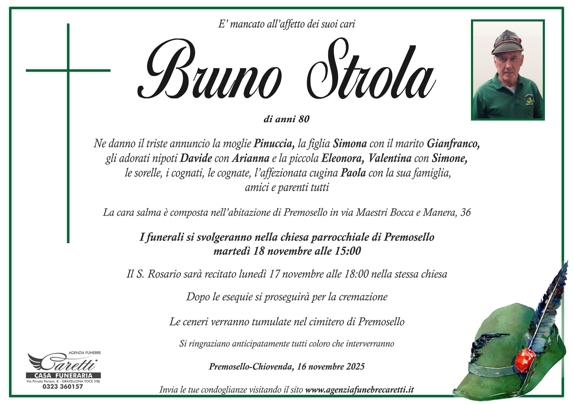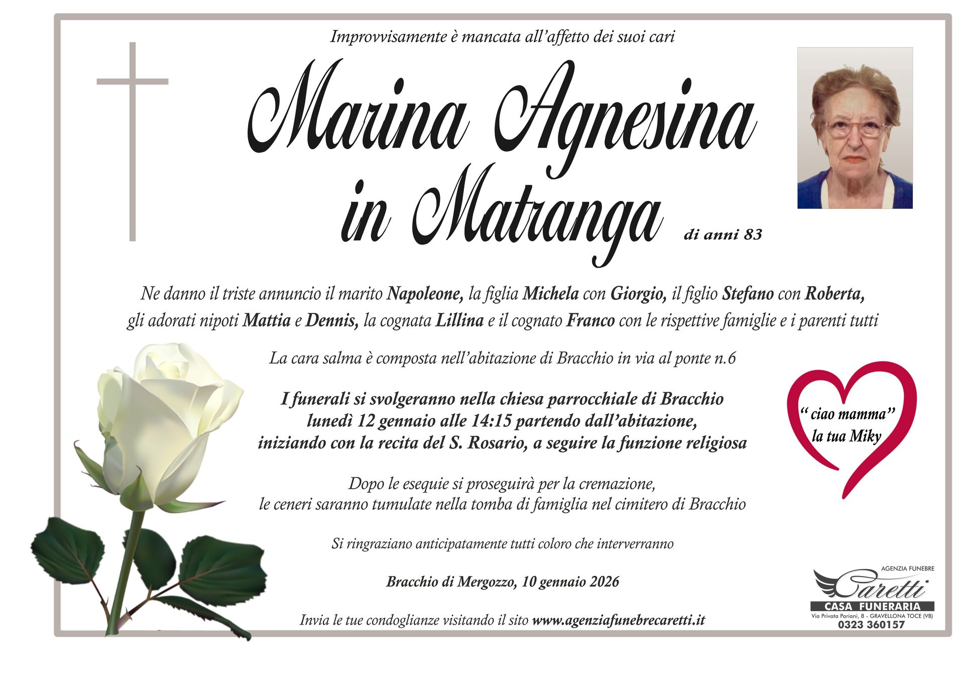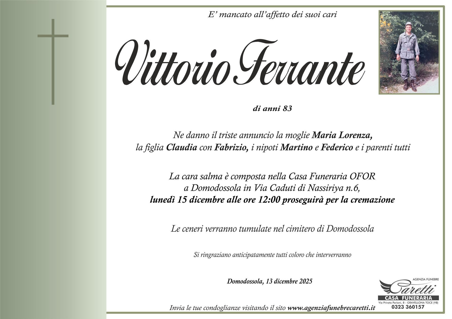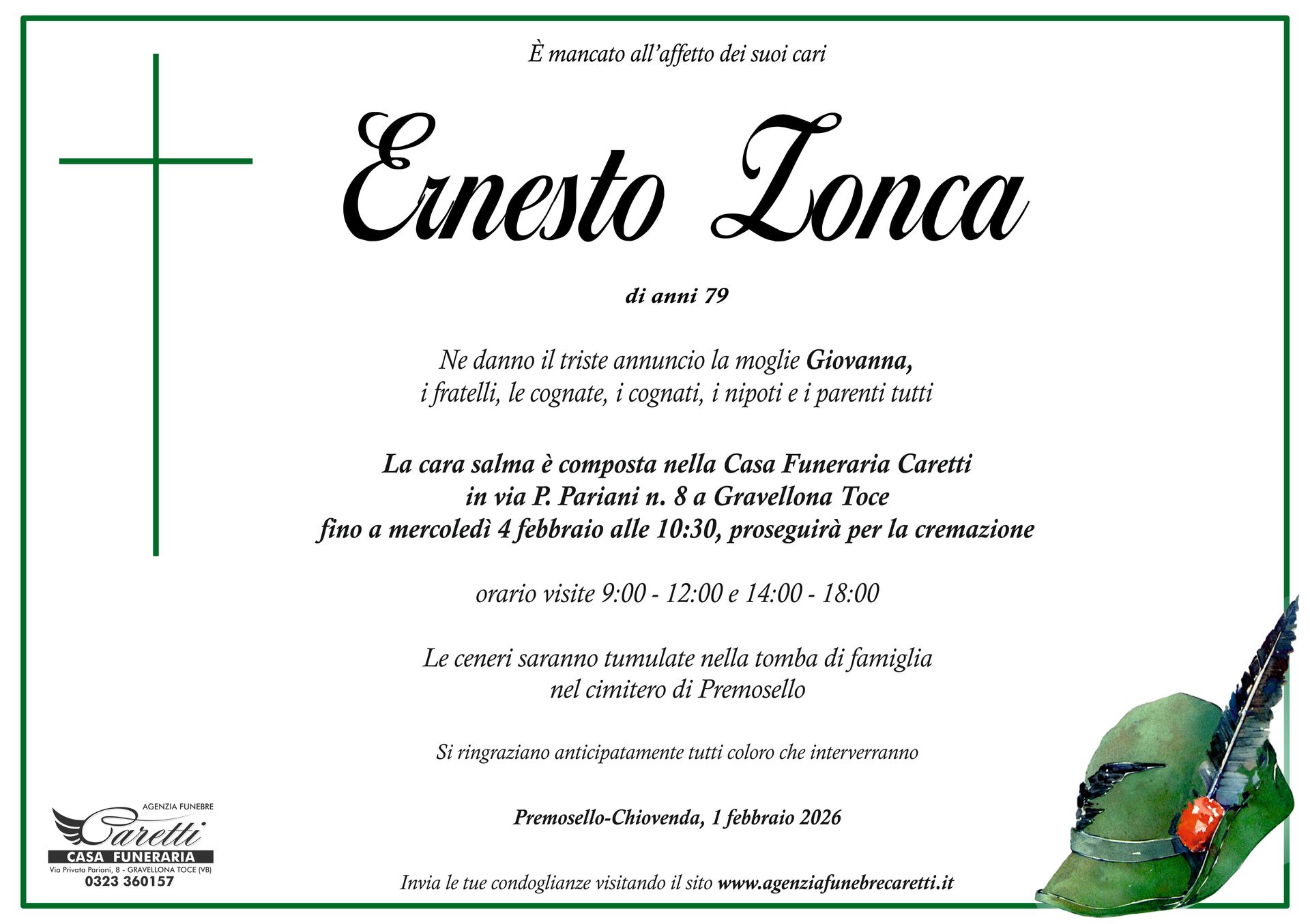 L'agenzia funebre Caretti, con sede e Casa Funeraria a Gravellona Toce in via Privata Pariani n.8, è attiva h24, 7 giorni su 7.